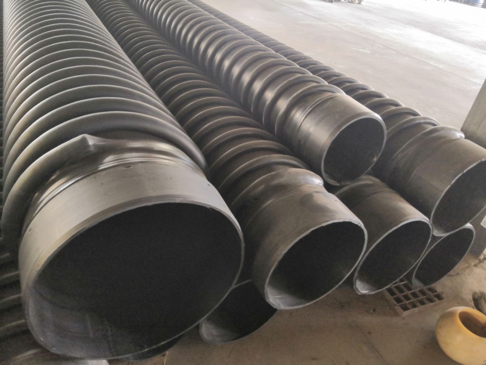 6.管内壁糙率低,输水量大 绕结构壁管产品内壁糙率N约为0.010,因此输送流体时比摩阻小,相对同内径其它客票和,在同等使用条件下输水量较水泥管可大幅度提高。因此可用内径较小的缠绕结构壁管替代内径较大的水泥管 在应用中,同等条件下使用缠绕结构壁管的工程和可靠性与传统管材相比都将提高,综合效益明显,特别是在施工场地狭窄、建筑密集、地下管线复杂和交通繁忙路段以及在酸碱性土壤铺设时,更具优越性